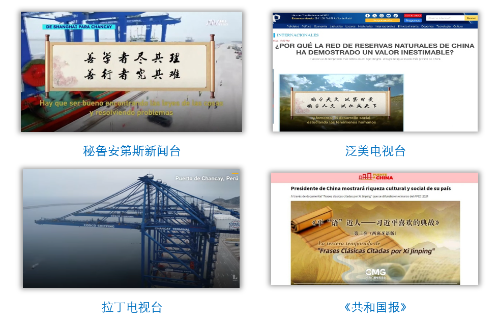 在中國(guó)國(guó)家主席習(xí)近平應(yīng)秘魯共和國(guó)總統(tǒng)博魯阿爾特邀請(qǐng),赴利馬出席亞太經(jīng)合組織第三十一次領(lǐng)導(dǎo)人非正式會(huì)議并對(duì)秘魯進(jìn)行國(guó)事訪(fǎng)問(wèn)之際,由中國(guó)中央廣播電視總臺(tái)制作的《平“語(yǔ)”近人——習(xí)近平喜歡的典故》第三季(西班牙語(yǔ)版),將于當(dāng)?shù)貢r(shí)間11月14日起在秘魯國(guó)家廣播電視臺(tái)、秘魯電視聯(lián)播網(wǎng)、秘魯廣播節(jié)目集團(tuán)電視端等多平臺(tái)落地播出。當(dāng)?shù)囟嗉抑髁髅襟w對(duì)節(jié)目落播進(jìn)行預(yù)告,引發(fā)秘魯各界普遍期待和廣泛關(guān)注。