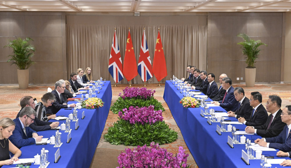習(xí)近平指出,當(dāng)前世界進(jìn)入新的動(dòng)蕩變革期。中英作為聯(lián)合國安理會(huì)常任理事國和世界主要經(jīng)濟(jì)體,既肩負(fù)推動(dòng)各自國家發(fā)展的重任,也承擔(dān)應(yīng)對(duì)全球性挑戰(zhàn)的責(zé)任。雙方應(yīng)該秉持戰(zhàn)略伙伴定位,堅(jiān)持相互尊重、開放合作、交流互鑒,實(shí)現(xiàn)互利共贏,共同書寫中英關(guān)系健康穩(wěn)定發(fā)展的下一個(gè)篇章。