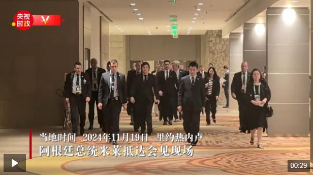 當(dāng)?shù)貢r(shí)間11月19日,國(guó)家主席習(xí)近平在里約熱內(nèi)盧出席二十國(guó)集團(tuán)領(lǐng)導(dǎo)人峰會(huì)期間會(huì)見(jiàn)阿根廷總統(tǒng)米萊。