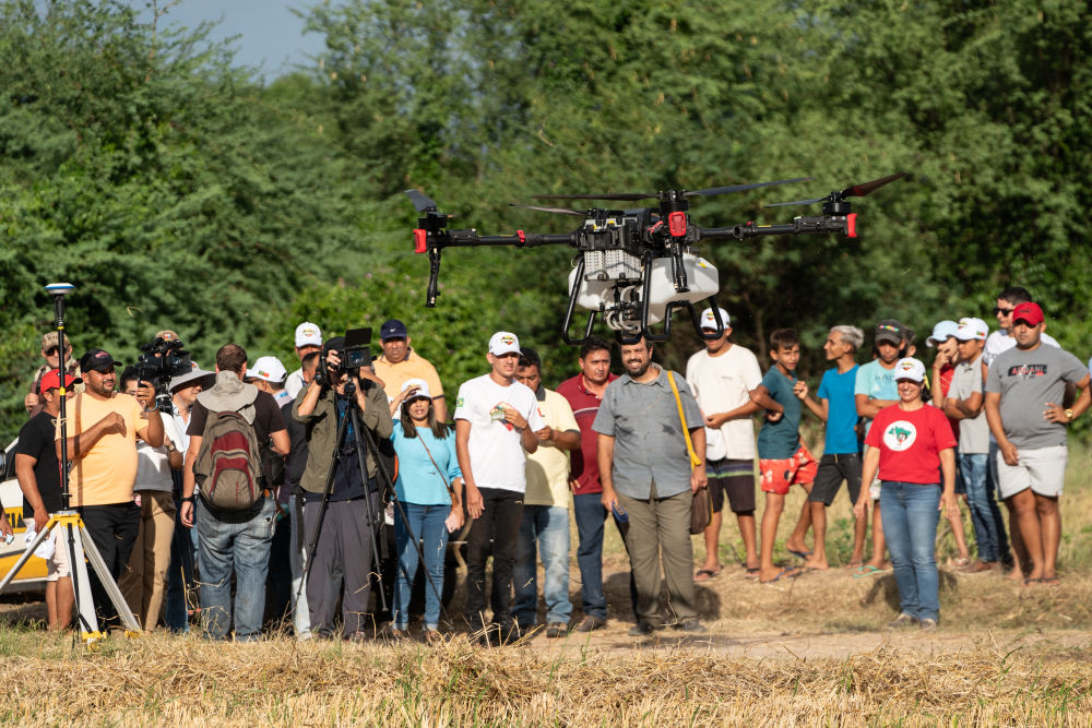 2024年2月2日,在巴西阿波迪,人們觀看一款中國生產(chǎn)的農(nóng)用無人機。當日,中巴農(nóng)業(yè)機械化合作示范項目啟動儀式在巴西阿波迪舉行,第一批來自中國7家農(nóng)機企業(yè)共31臺(件)設備正式交付給巴西農(nóng)村勞動者組織。新華社記者 王天聰 攝