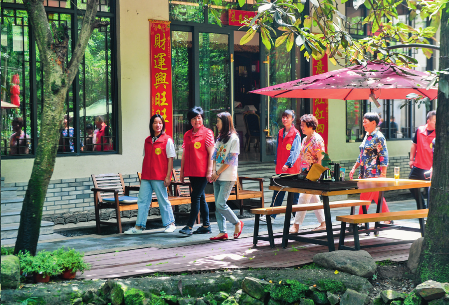 走進(jìn)白沙村,只見(jiàn)柏油馬路邊是排列齊整的黃色小洋樓,家家戶戶門口都有綠植點(diǎn)綴,村里建起健身廣場(chǎng)、籃球場(chǎng)、游泳池、羽毛球場(chǎng)等大型運(yùn)動(dòng)場(chǎng)所。2024年春節(jié),村里組織第三次拍攝全村福,上千村民齊聚在一起,用鏡頭定格幸福笑容。