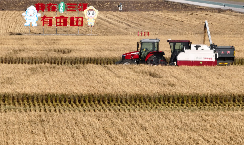 龍江大地,金風送爽,稻浪滾滾。建三江七星農(nóng)場萬畝大地號豐收在望,10臺收割機一字排開,正在實施聯(lián)合作業(yè)。