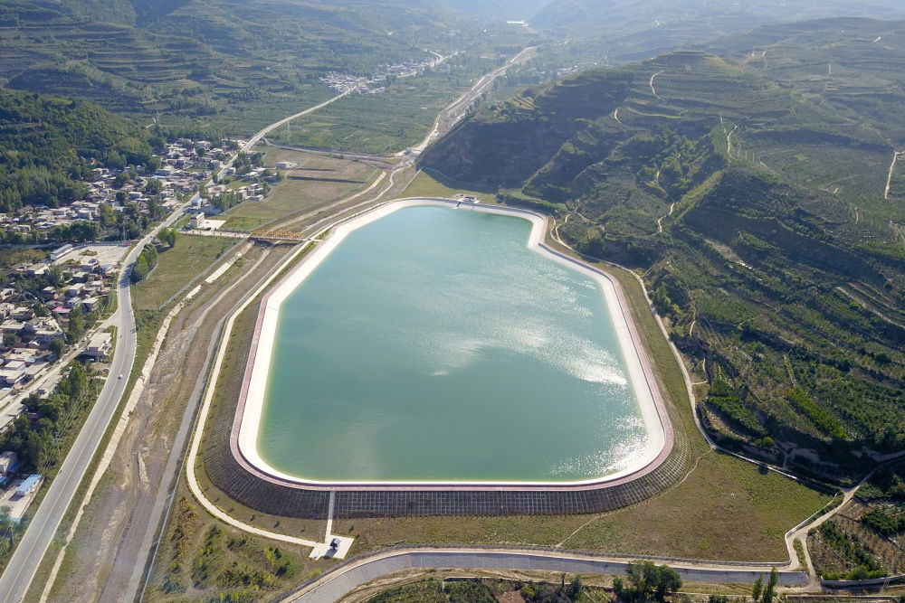 這是2021年9月8日在甘肅省天水市拍攝的引洮供水工程楊家灣調(diào)蓄水池(無人機照片)。新華社記者 范培珅 攝