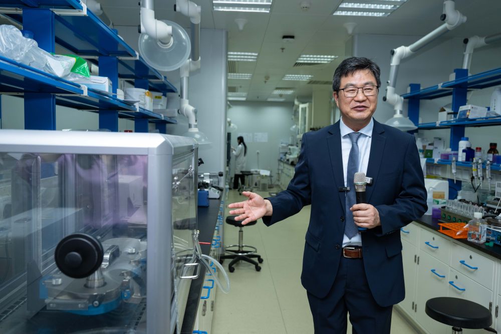 2024年6月17日,中藥質(zhì)量研究國(guó)家重點(diǎn)實(shí)驗(yàn)室(澳門大學(xué))主任、澳門大學(xué)中華醫(yī)藥研究院院長(zhǎng)陳新介紹實(shí)驗(yàn)室情況。
