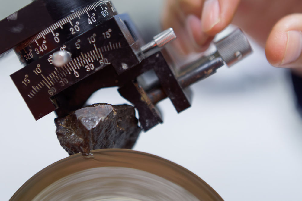 2019年10月31日,學(xué)生在月球與行星科學(xué)國(guó)家重點(diǎn)實(shí)驗(yàn)室(澳門科技大學(xué))切割隕石。