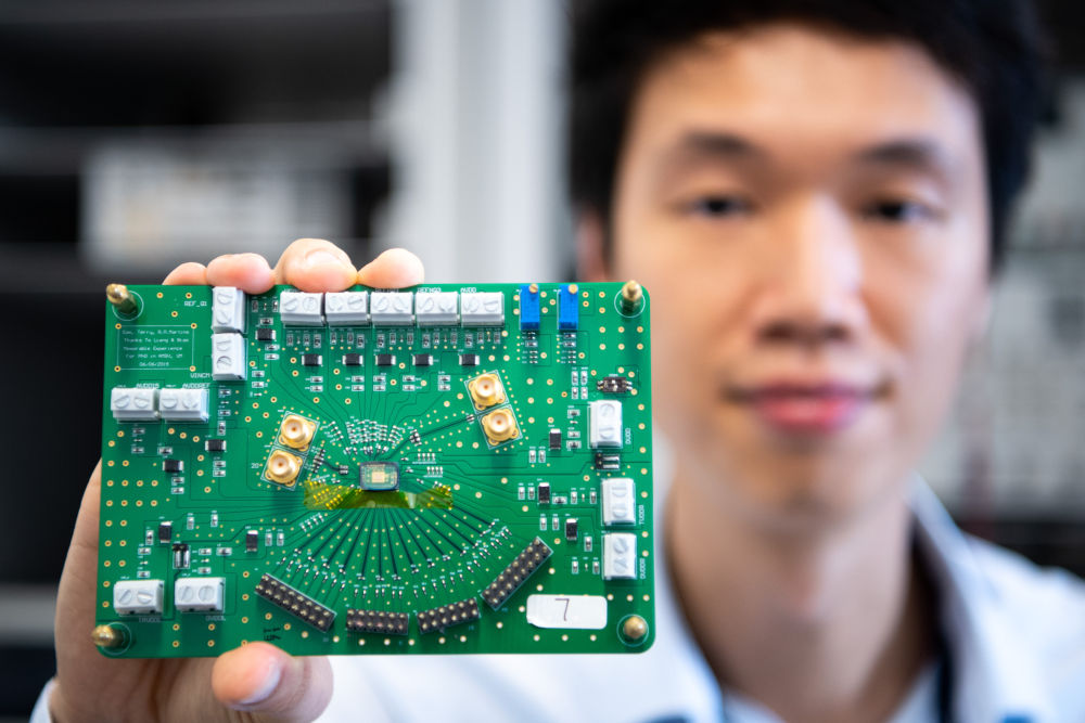 2019年11月1日,研究人員陳知行在模擬與混合信號(hào)超大規(guī)模集成電路國(guó)家重點(diǎn)實(shí)驗(yàn)室(澳門大學(xué))展示自主設(shè)計(jì)的模擬數(shù)字轉(zhuǎn)換器芯片。