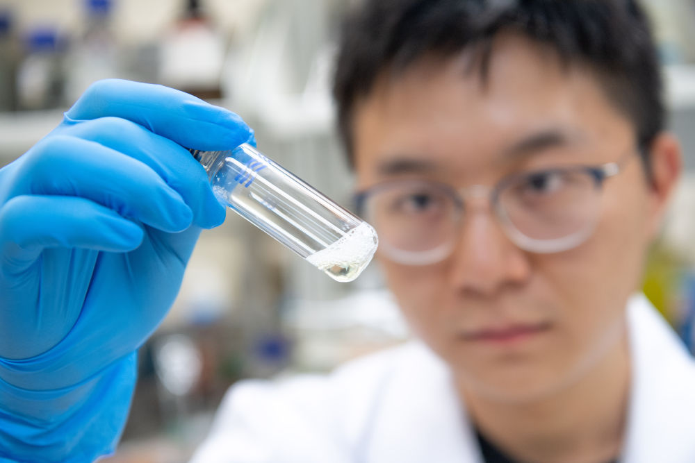 2019年11月1日,在中藥質(zhì)量研究國(guó)家重點(diǎn)實(shí)驗(yàn)室(澳門大學(xué)),學(xué)生觀察藥物樣品的溶解狀態(tài)。