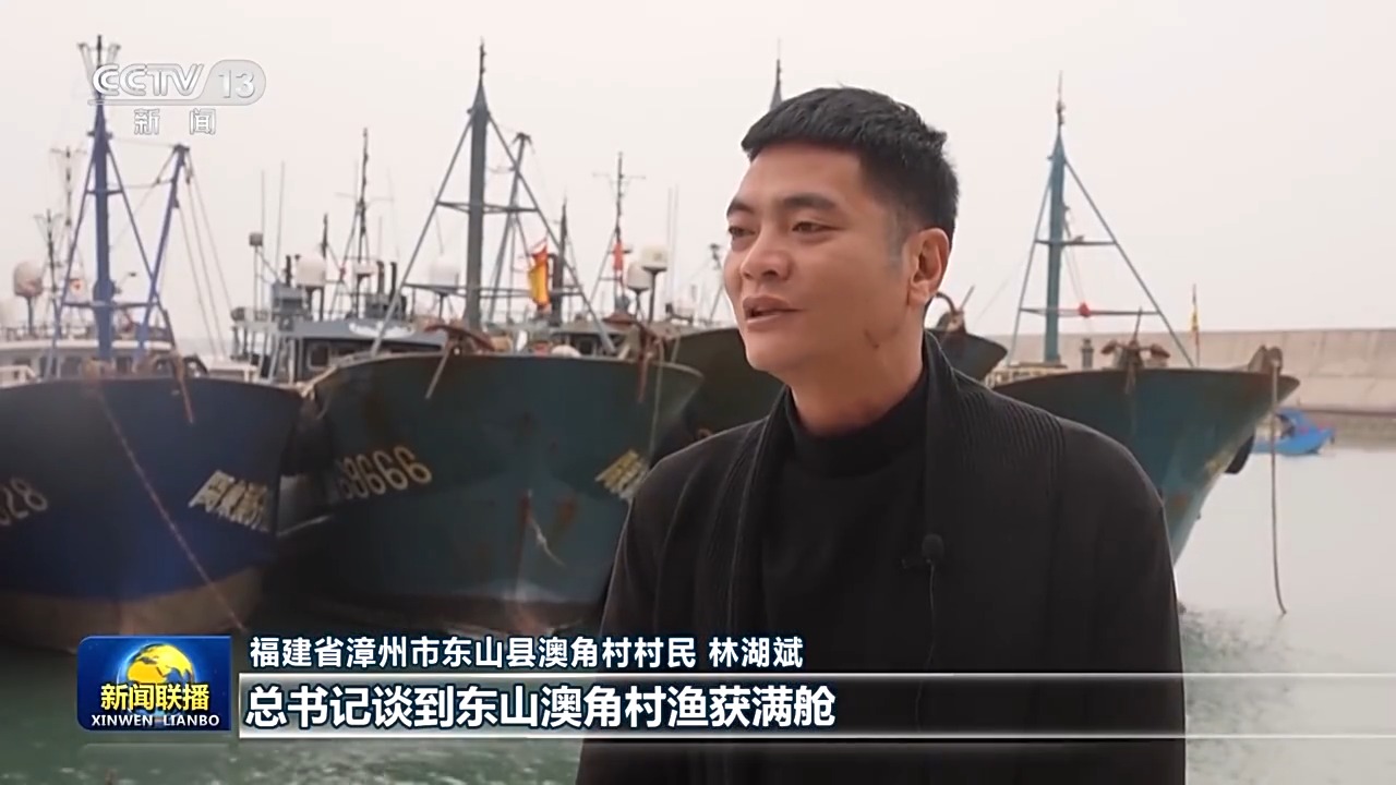 福建省漳州市東山縣澳角村村民 林湖斌:在新年賀詞中,總書記談到東山澳角村漁獲滿艙,讓我非常感動,也干勁十足?,F(xiàn)在是年節(jié)期間,正是海產(chǎn)品的銷售旺季,訂單也是越來越多。我們要擼起袖子加油干,讓我們海洋漁業(yè)發(fā)展得更好,把我們澳角村建設(shè)得更美好。
