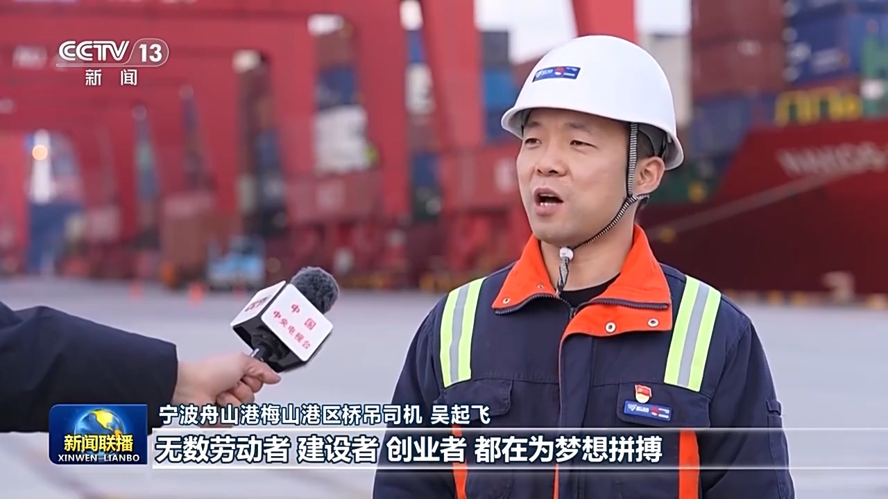 寧波舟山港梅山港區(qū)橋吊司機(jī) 吳起飛:習(xí)近平總書記在2025年新年賀詞里說,無數(shù)勞動者、建設(shè)者、創(chuàng)業(yè)者都在為夢想拼搏。2024年,我們實(shí)現(xiàn)了寧波舟山港梅山港區(qū)年集裝箱吞吐量超一千萬的目標(biāo)。2025年,和團(tuán)隊的小伙伴們一起,把智慧港口建設(shè)好,為海港的發(fā)展貢獻(xiàn)力量。