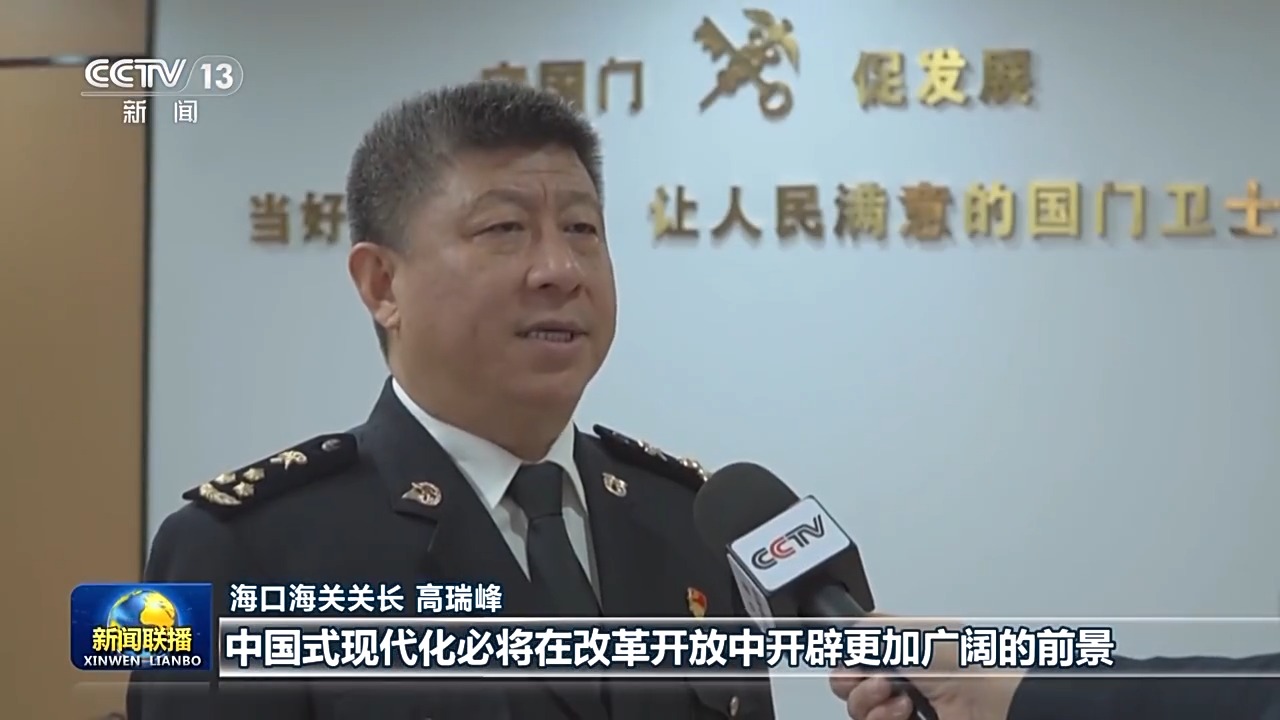 海口海關(guān)關(guān)長 高瑞峰:習(xí)近平主席在新年賀詞中指出,中國式現(xiàn)代化必將在改革開放中開辟更加廣闊的前景。今年,海南自貿(mào)港將實(shí)現(xiàn)封關(guān)運(yùn)作。我們要始終沿著習(xí)近平總書記指引的方向前進(jìn),不斷深化海關(guān)監(jiān)管制度集成創(chuàng)新,努力把海南自由貿(mào)易港打造成為引領(lǐng)我國新時代對外開放的重要門戶。