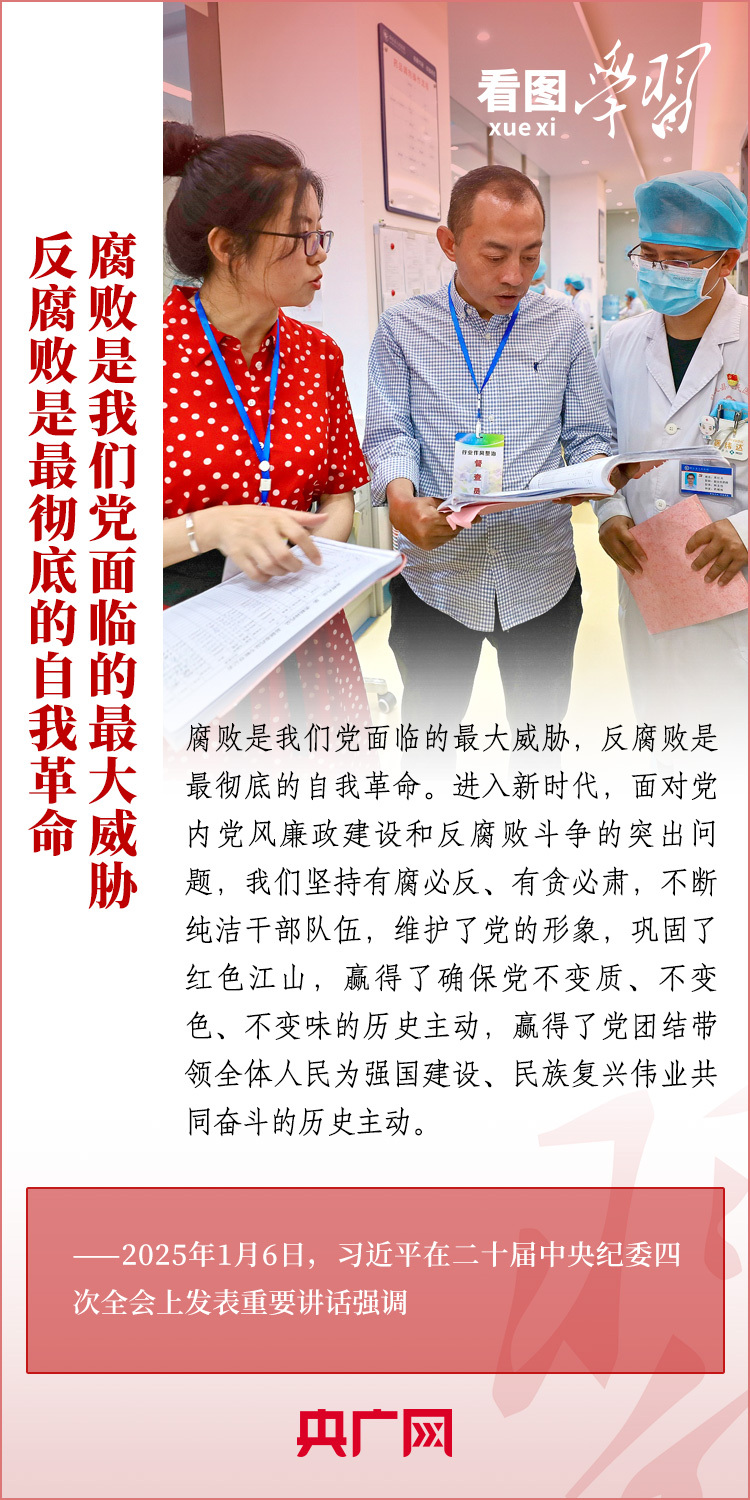 1月6日,習近平總書記在二十屆中央紀委四次全會上發(fā)表重要講話,充分肯定過去一年全面從嚴治黨取得的新進展、新成效,深刻分析當前反腐敗斗爭形勢,對堅決打好反腐敗斗爭攻堅戰(zhàn)、持久戰(zhàn)、總體戰(zhàn)提出明確要求??倳洀娬{(diào),新時代新征程,必須堅持用改革精神和嚴的標準管黨治黨,努力取得更大成效,確保黨的二十大和二十屆三中全會部署落地落實,確保黨始終成為中國特色社會主義事業(yè)的堅強領(lǐng)導核心,推動中國式現(xiàn)代化行穩(wěn)致遠。一起來學習!