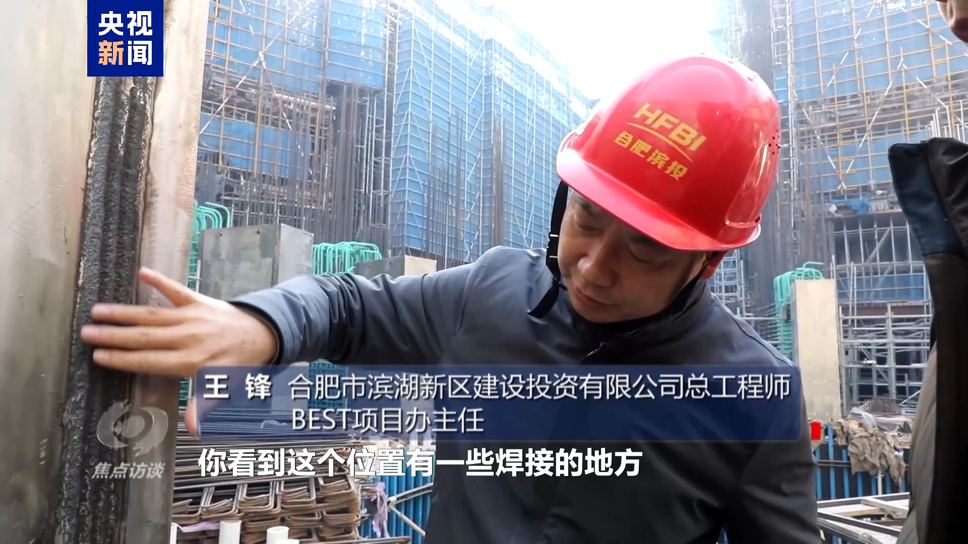合肥市濱湖新區(qū)建設投資有限公司總工程師 BEST項目辦主任 王鋒:你看這個位置有一些焊接的地方,是在加工廠里面二次焊接的時候出現(xiàn)了問題。焊接的點位的磁導率不過關(guān),這個科學問題解決不了,整個工程就要停工,所做的所有的東西就是圍繞這個來干的。