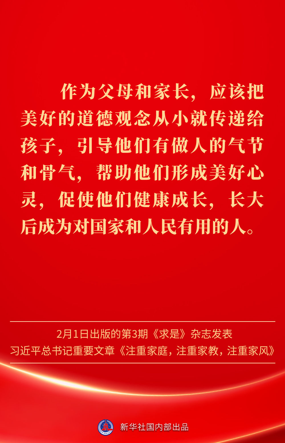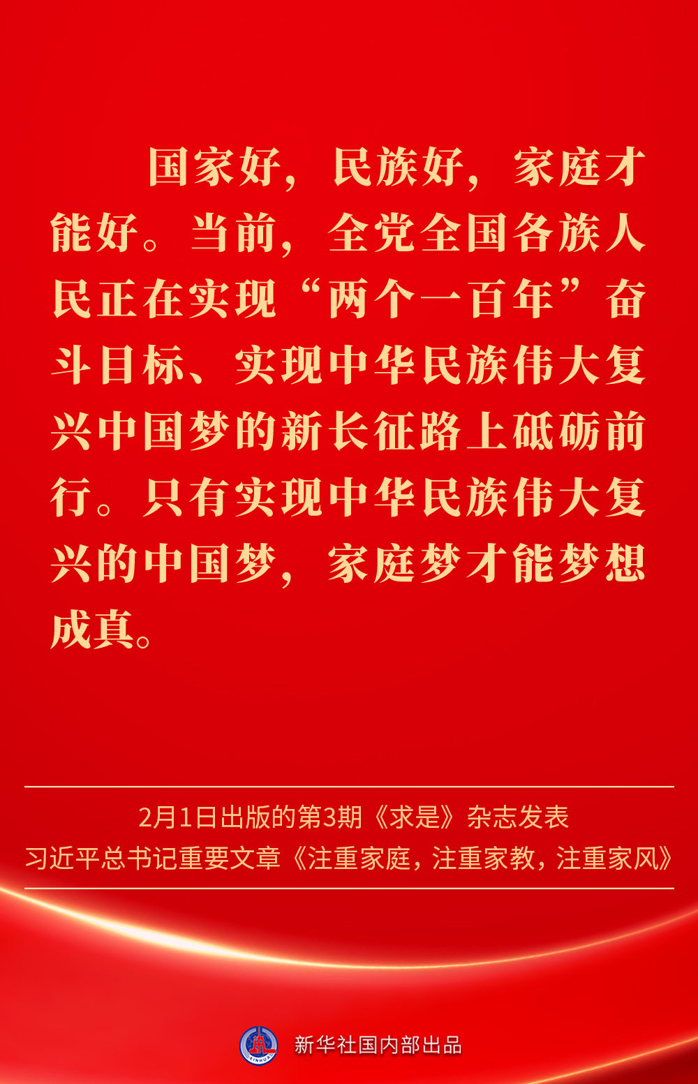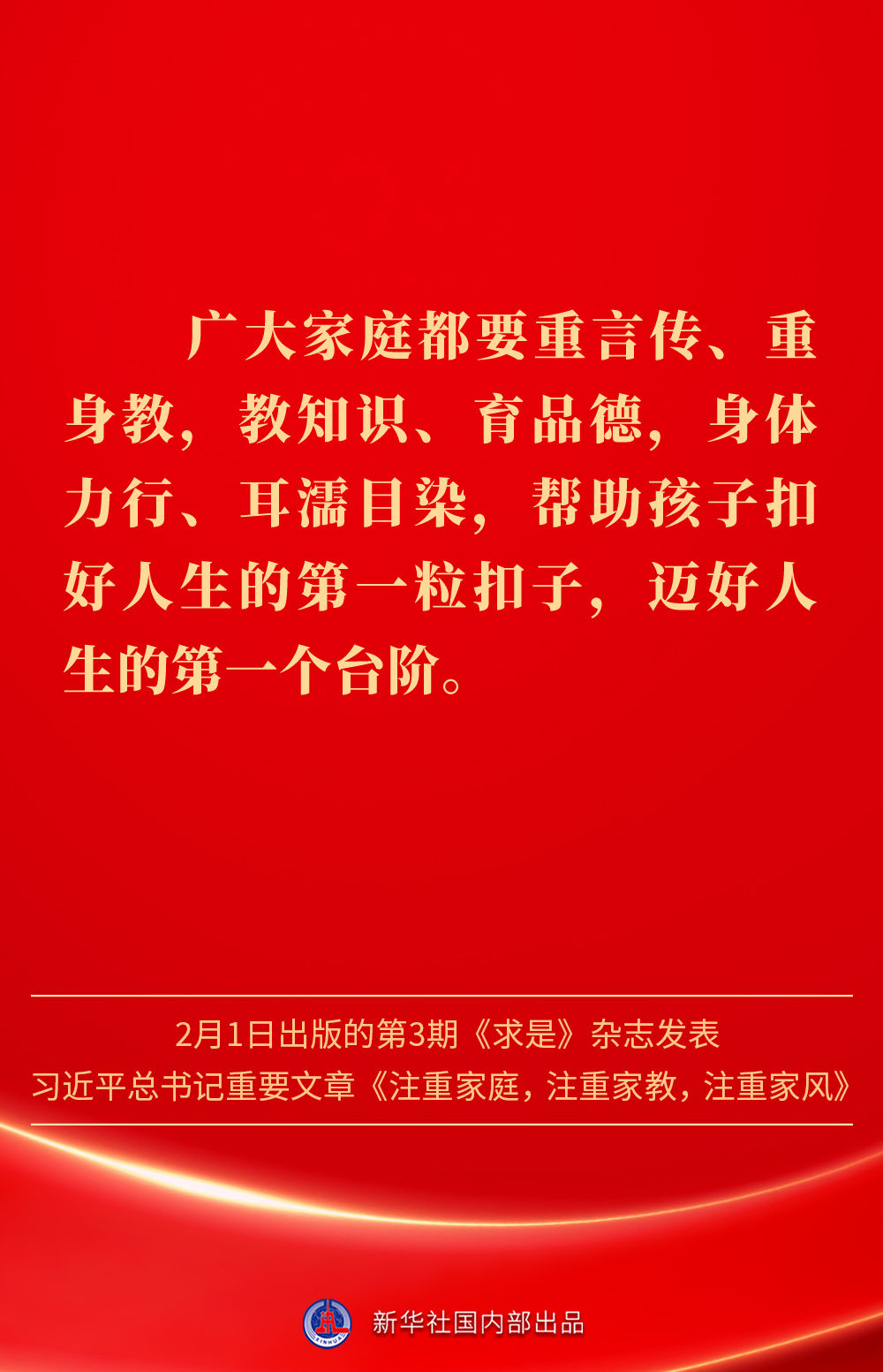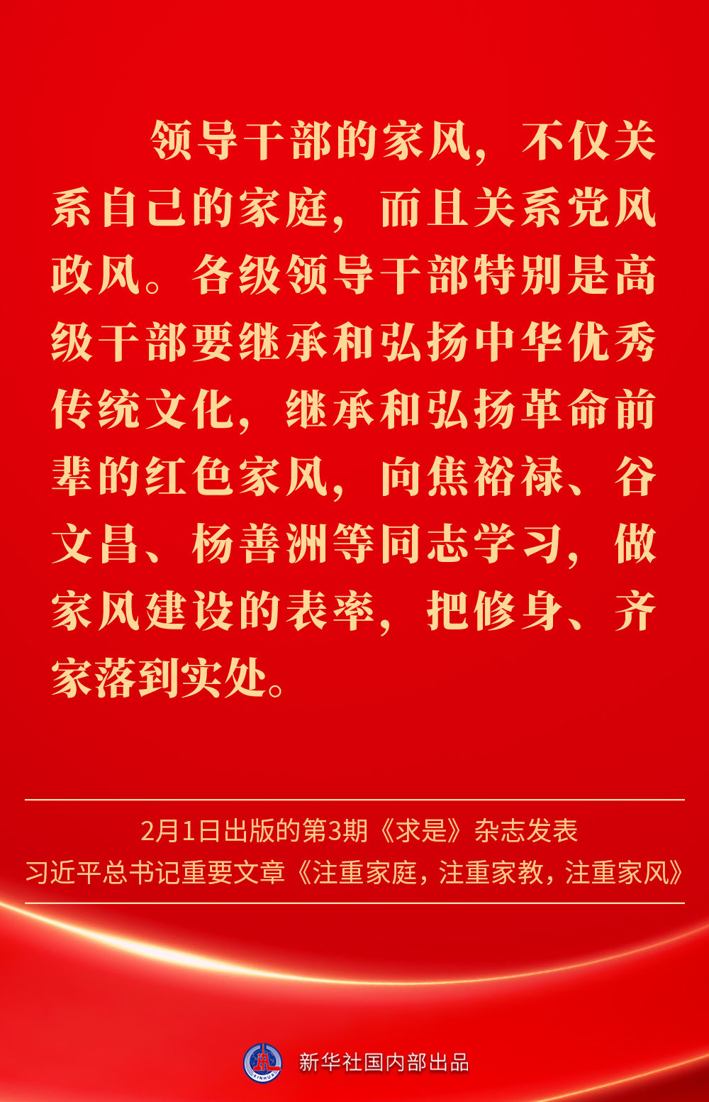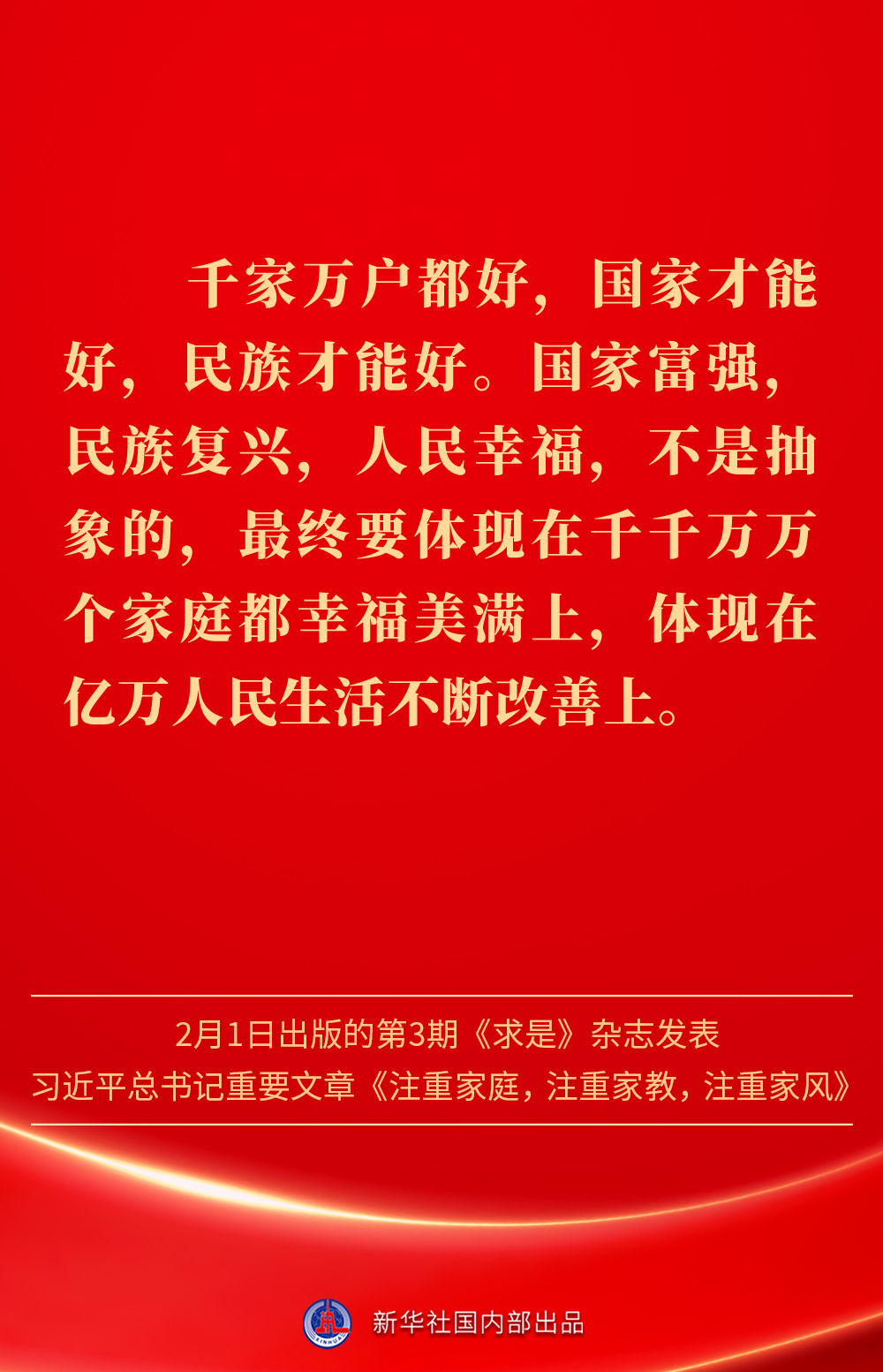 萬家團圓共慶新春佳節(jié)之際,2月1日出版的第3期《求是》雜志發(fā)表習(xí)近平總書記重要文章《注重家庭,注重家教,注重家風(fēng)》。為什么要注重家庭、家教、家風(fēng)?如何做好家庭文明建設(shè)?習(xí)近平總書記這樣闡述——