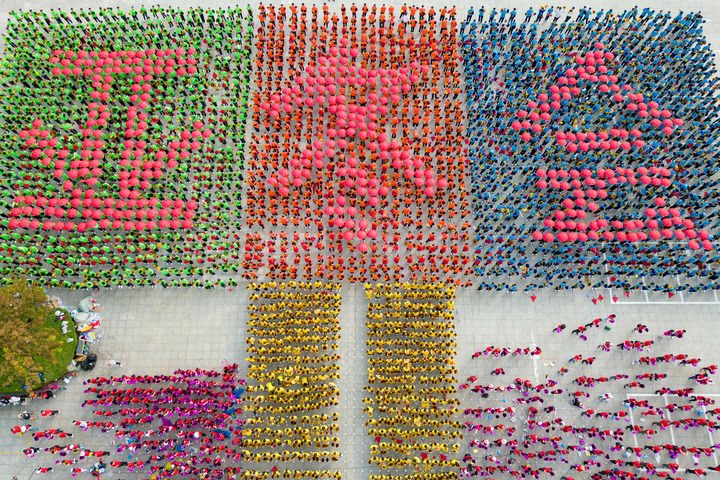 這是2023年7月8日拍攝的在哈爾濱太陽(yáng)島景區(qū)太陽(yáng)石廣場(chǎng)舉行的慶祝儀式現(xiàn)場(chǎng)(無(wú)人機(jī)照片)。當(dāng)日,中國(guó)哈爾濱市獲得2025年第九屆亞洲冬季運(yùn)動(dòng)會(huì)舉辦權(quán)。新華社記者 張濤 攝