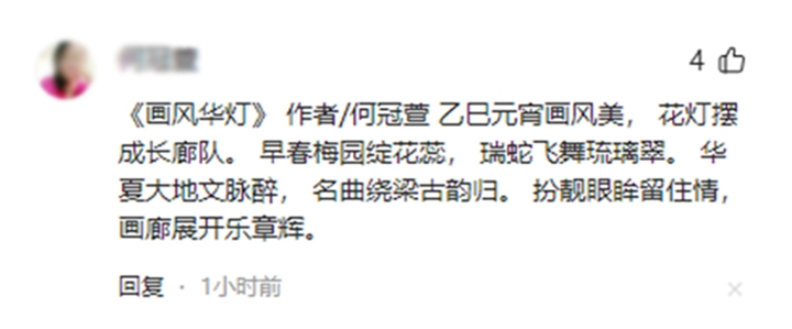 乙巳元宵畫風美,花燈擺成長廊隊。