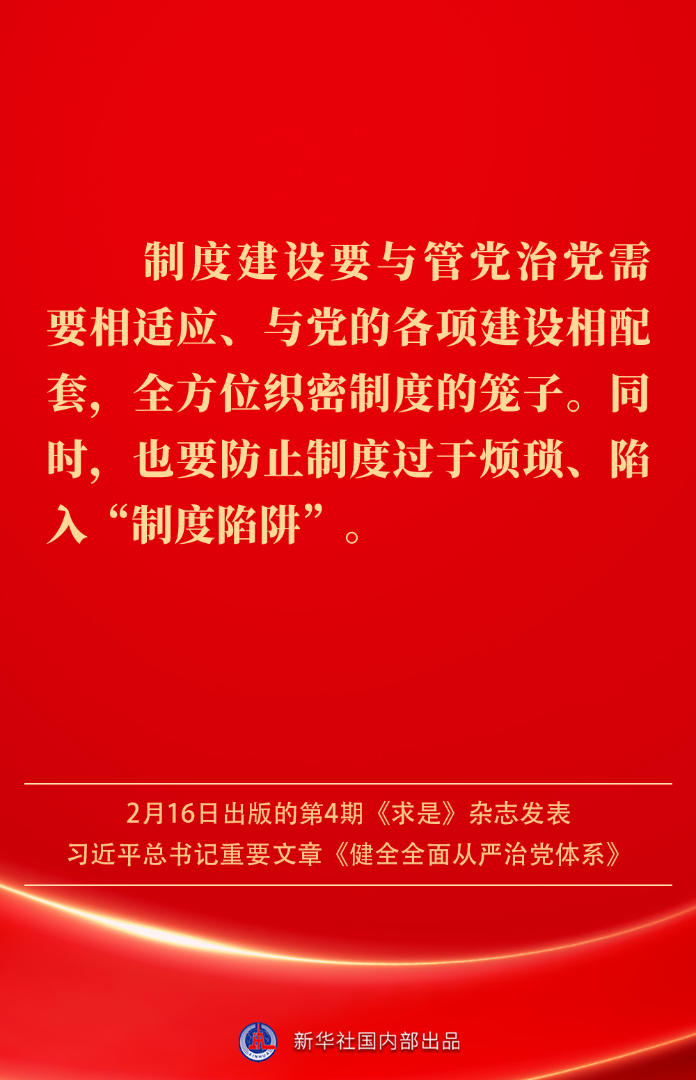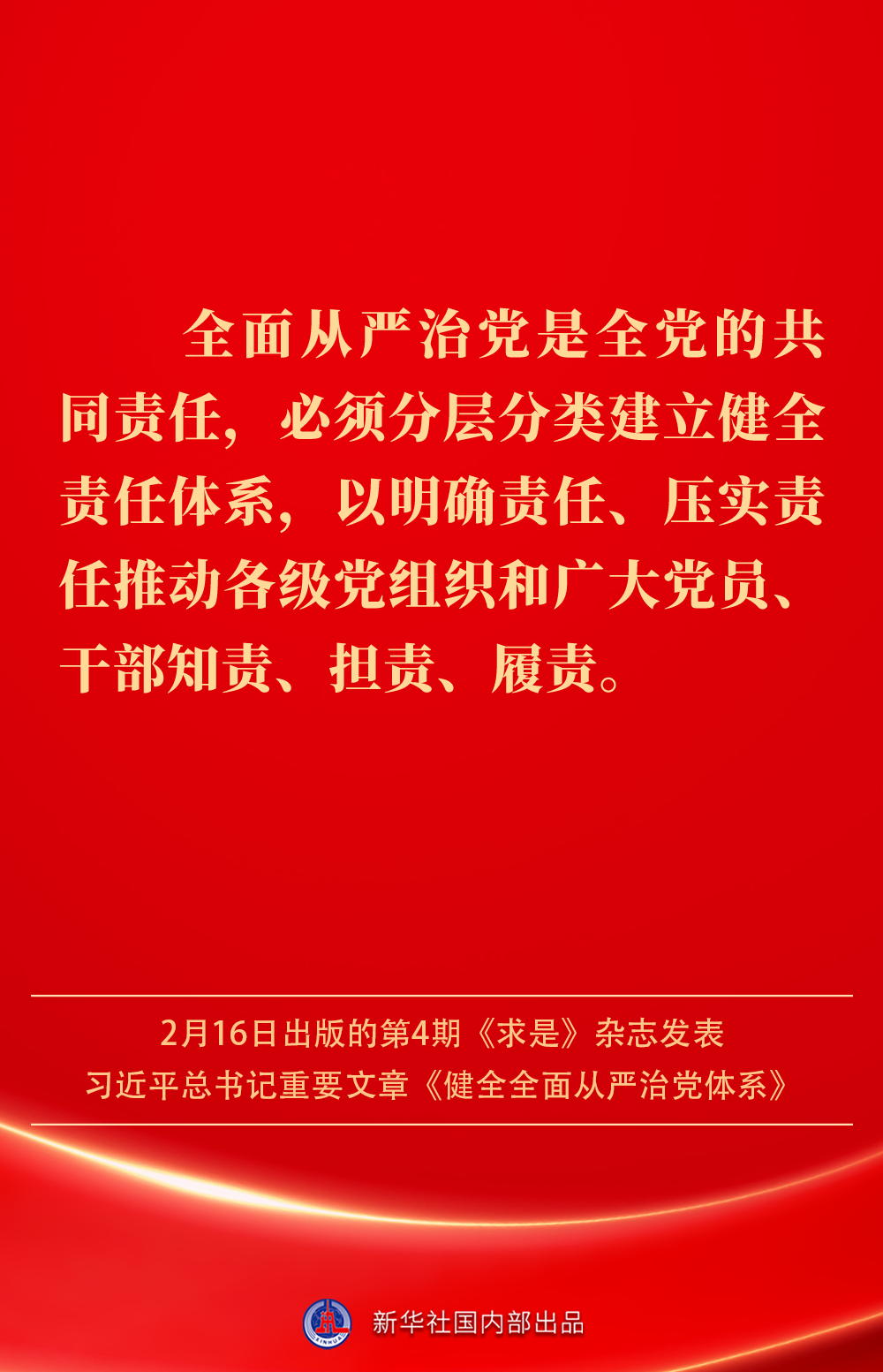 2月16日出版的第4期《求是》雜志發(fā)表習(xí)近平總書記重要文章《健全全面從嚴(yán)治黨體系》。如何進一步健全要素齊全、功能完備、科學(xué)規(guī)范、運行高效的全面從嚴(yán)治黨體系?習(xí)近平總書記闡明要旨——