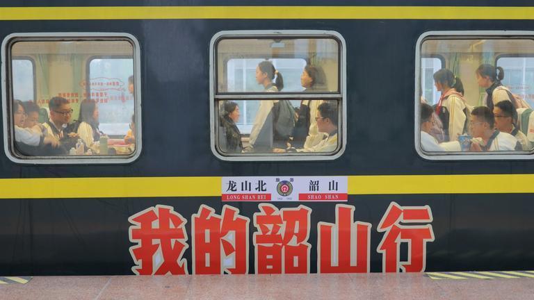 △湖南龍山縣青年學(xué)子乘坐紅色研學(xué)專(zhuān)列。