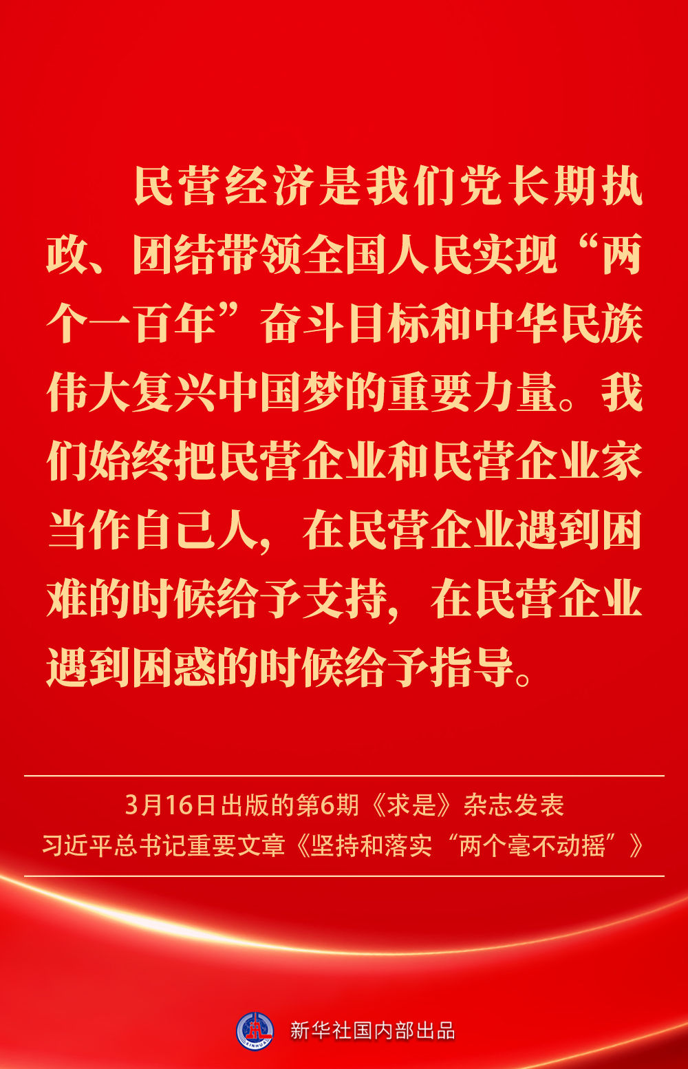 3月16日出版的第6期《求是》雜志發(fā)表習(xí)近平總書記重要文章《堅(jiān)持和落實(shí)“兩個(gè)毫不動(dòng)搖”》。這是習(xí)近平總書記2013年11月至2025年2月期間有關(guān)重要論述的節(jié)錄。如何認(rèn)識(shí)“兩個(gè)毫不動(dòng)搖”?公有制經(jīng)濟(jì)和非公有制經(jīng)濟(jì)是怎樣的關(guān)系?習(xí)近平總書記這樣闡述——