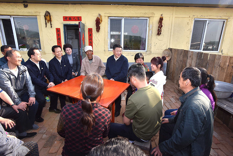 2016年5月23日,習近平在黑龍江伊春上甘嶺林業(yè)局溪水經營所林場職工劉養(yǎng)順家,同一家人和鄰居們親切交談。新華社記者 李濤 攝