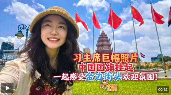 ToSun記者團發(fā)現(xiàn)金邊街頭各處陸續(xù)懸掛起中國國旗和習主席巨幅照片。一起來感受當?shù)貧g迎氛圍!