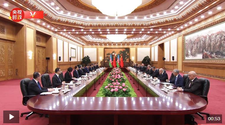 4月23日上午,國家主席習近平在北京人民大會堂同來華進行國事訪問的阿塞拜疆總統阿利耶夫舉行會談。