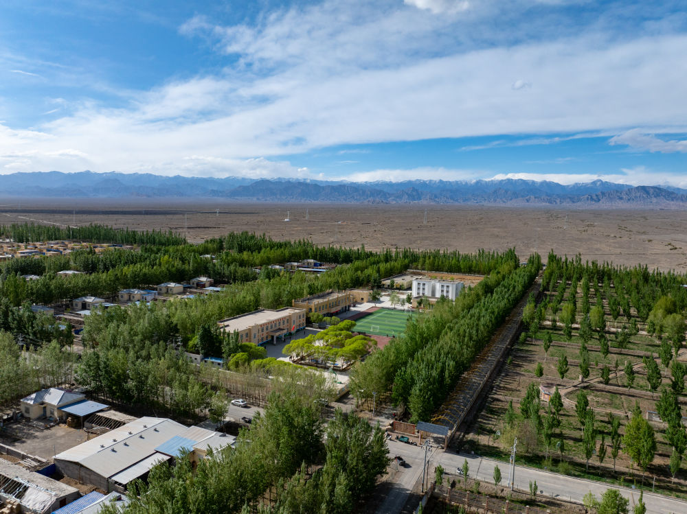 這是4月23日在新疆克州阿圖什市哈拉峻鄉(xiāng)拍攝的謝依特小學(xué)(無人機照片)。