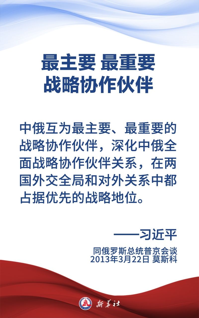 中俄關系歷經風雨,歷久彌堅,樹立了大國、鄰國永久睦鄰友好、全面戰(zhàn)略協(xié)作、互利合作共贏的典范。習近平主席和普京總統(tǒng)保持密切交往,為新時代中俄關系作出頂層設計,提供戰(zhàn)略引領。在國事訪問等重要場合,習近平主席這樣論述中俄關系——