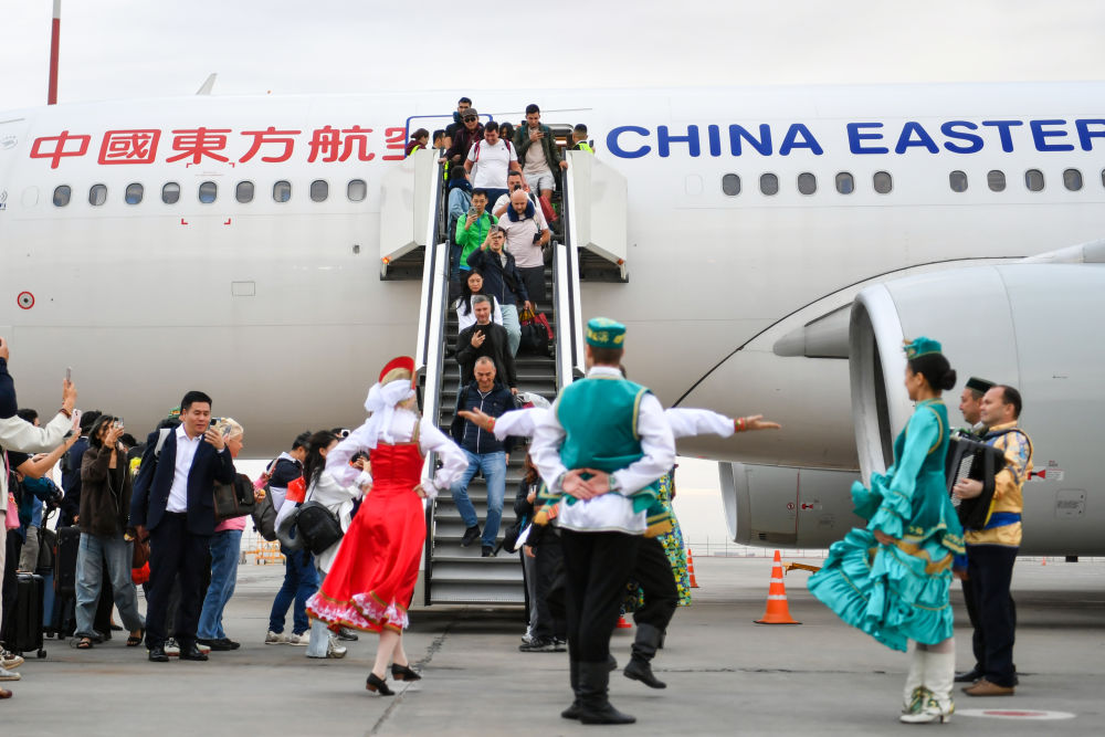 2024年9月28日,東航“上海-喀山”直飛首航航班的旅客抵達(dá)俄羅斯韃靼斯坦共和國(guó)喀山國(guó)際機(jī)場(chǎng)。當(dāng)日,上海和喀山之間首條直飛航線正式開(kāi)通。