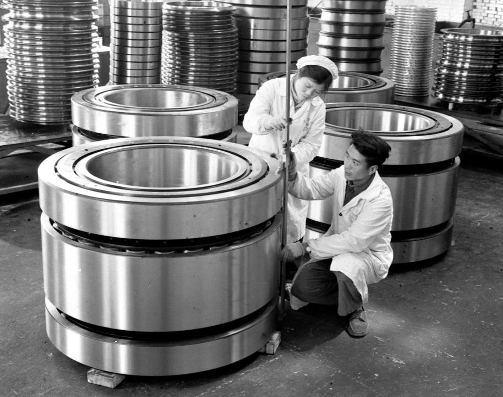 1966年,洛陽軸承廠檢驗員在細(xì)心檢查即將出廠的一批特大型軸承的質(zhì)量。