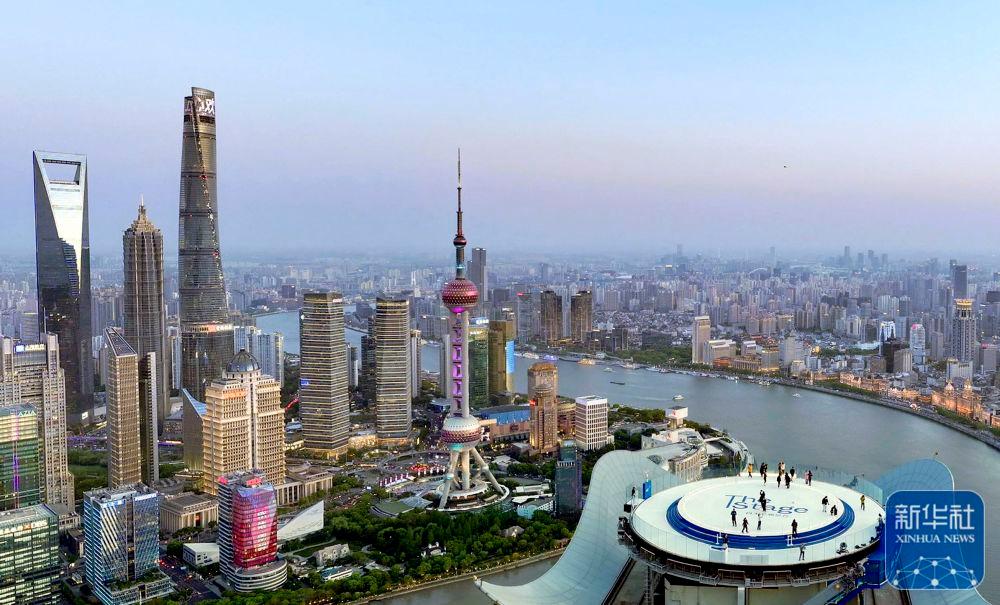 2025年4月14日在上海白玉蘭觀景臺(tái)拍攝的城市天際線(無人機(jī)照片)。