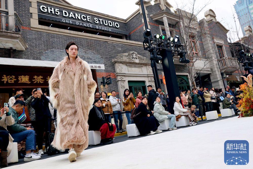 2024年12月7日,模特在“?!づ蓮垐@時(shí)尚文化周”中國(guó)青年設(shè)計(jì)師時(shí)裝秀上展示設(shè)計(jì)師服裝作品。時(shí)裝秀以張園建筑主色調(diào)與設(shè)計(jì)線條為靈感,百年石庫門建筑群落為背景,將茂名北路作為T臺(tái)秀場(chǎng),獨(dú)具上海特色。