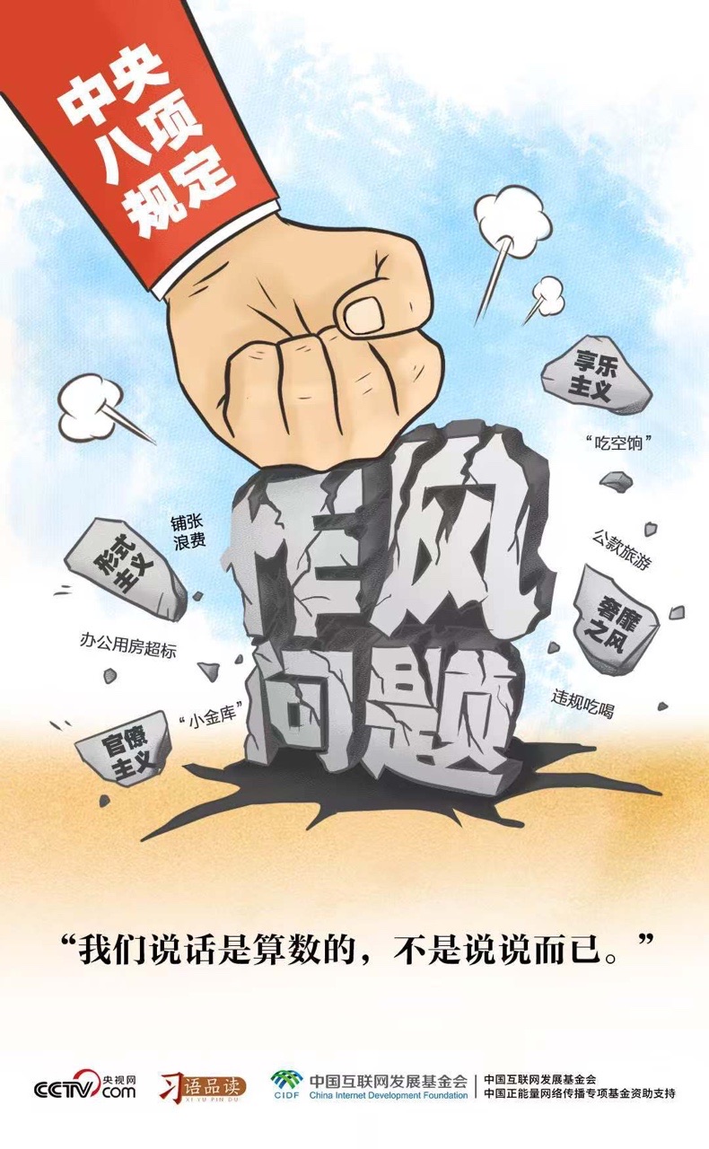 2012年12月,習(xí)近平總書記在主持中央政治局會議,審議通過《十八屆中央政治局關(guān)于改進(jìn)工作作風(fēng)、密切聯(lián)系群眾的八項(xiàng)規(guī)定》時說了這樣一番話:“我們說了不是白說,說了必須做到,把文件上寫的內(nèi)容一一落到實(shí)處。”