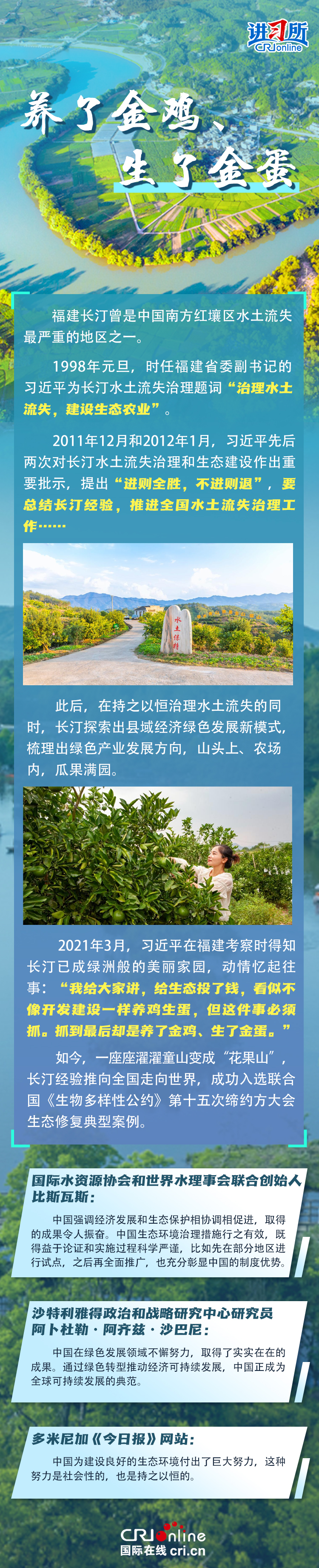 新時(shí)代以來,在習(xí)近平生態(tài)文明思想的科學(xué)指引下,“兩山”理念已深入人心,從“點(diǎn)綠成金”的紅樹林到一座座“花果山”,再到走向世界的長汀經(jīng)驗(yàn)……美麗中國建設(shè)邁出重大步伐,生態(tài)環(huán)境保護(hù)發(fā)生歷史性變化。國際社會(huì)認(rèn)為,中國取得廣泛的綠色發(fā)展成就,從根本上源于習(xí)近平生態(tài)文明思想,特別是“兩山”理念的指引。在通過綠色轉(zhuǎn)型推動(dòng)經(jīng)濟(jì)可持續(xù)發(fā)展方面,中國正成為全球可持續(xù)發(fā)展的典范。
