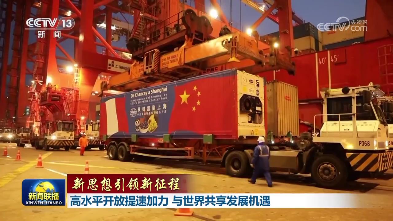 央視網(wǎng)消息(新聞聯(lián)播):習(xí)近平總書記強(qiáng)調(diào),中國(guó)將繼續(xù)推動(dòng)高質(zhì)量發(fā)展,擴(kuò)大高水平對(duì)外開放,同各國(guó)分享發(fā)展機(jī)遇,為地區(qū)乃至世界經(jīng)濟(jì)帶來更多穩(wěn)定性和確定性。今年以來,我國(guó)依托超大規(guī)模市場(chǎng)優(yōu)勢(shì),在擴(kuò)大國(guó)際合作中提升開放能力,不斷拓展經(jīng)濟(jì)發(fā)展新空間,與世界共享發(fā)展機(jī)遇。