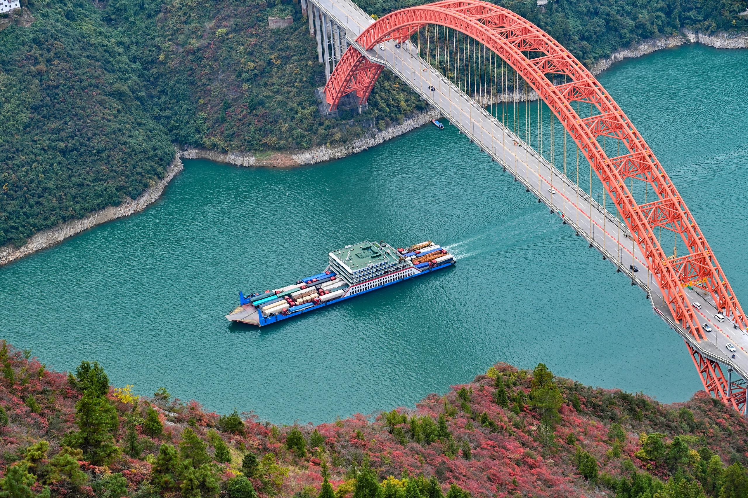 貨輪航行在長(zhǎng)江巫峽段水域