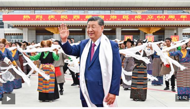 中共中央總書(shū)記、國(guó)家主席、中央軍委主席習(xí)近平率中央代表團(tuán)20日中午乘專(zhuān)機(jī)抵達(dá)拉薩,出席西藏自治區(qū)成立60周年慶?;顒?dòng)。習(xí)近平等在機(jī)場(chǎng)和拉薩市區(qū)受到西藏各族群眾的熱烈歡迎。中共中央政治局常委、全國(guó)政協(xié)主席、中央代表團(tuán)團(tuán)長(zhǎng)王滬寧,中共中央政治局常委、中央辦公廳主任蔡奇等同機(jī)抵達(dá)。
