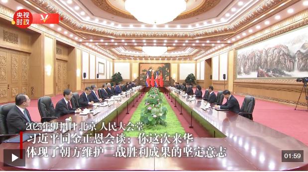 9月4日晚,中共中央總書(shū)記、國(guó)家主席習(xí)近平在北京人民大會(huì)堂同來(lái)華出席紀(jì)念中國(guó)人民抗日戰(zhàn)爭(zhēng)暨世界反法西斯戰(zhàn)爭(zhēng)勝利80周年活動(dòng)的朝鮮勞動(dòng)黨總書(shū)記、國(guó)務(wù)委員長(zhǎng)金正恩舉行會(huì)談。