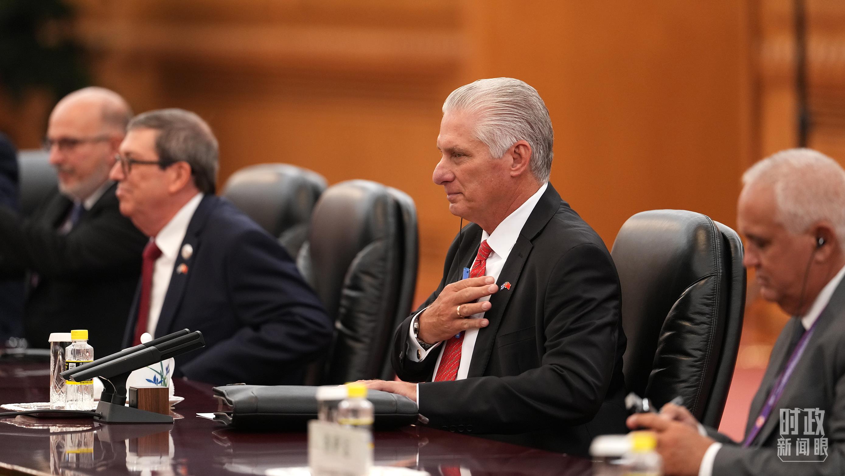△古巴共產(chǎn)黨中央委員會(huì)第一書記、古巴國(guó)家主席迪亞斯-卡內(nèi)爾在會(huì)見中。(總臺(tái)記者李晉拍攝)