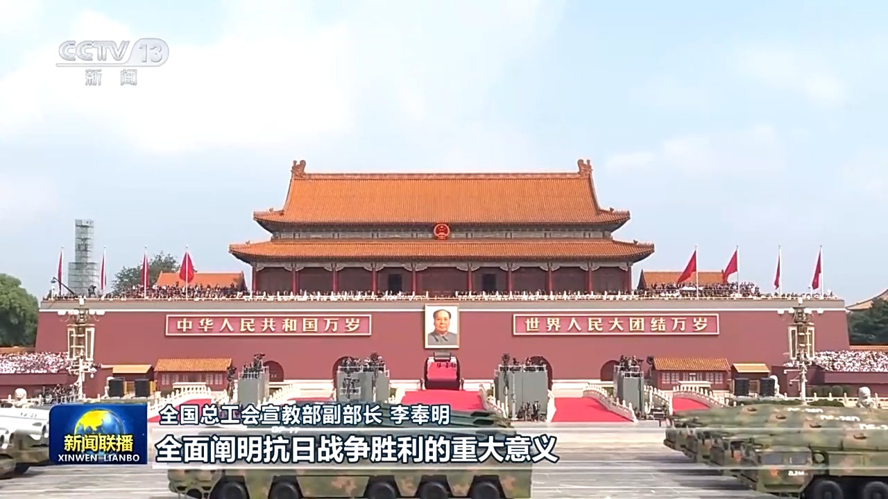 全國總工會(huì)宣教部副部長 李奉明:習(xí)近平總書記的重要講話,從全民族、全人類的高度,全面闡明抗日戰(zhàn)爭勝利的重大意義。莊嚴(yán)宣示中國人民維護(hù)世界和平與發(fā)展的堅(jiān)定立場(chǎng),我們深刻認(rèn)識(shí)到中國共產(chǎn)黨的中流砥柱作用是抗日戰(zhàn)爭勝利的關(guān)鍵。