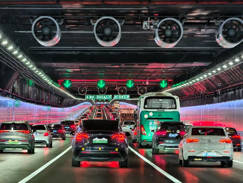 △2024年6月30日,深中通道正式通車(chē),這是開(kāi)通首日的深中通道海底沉管隧道內(nèi)的車(chē)流。