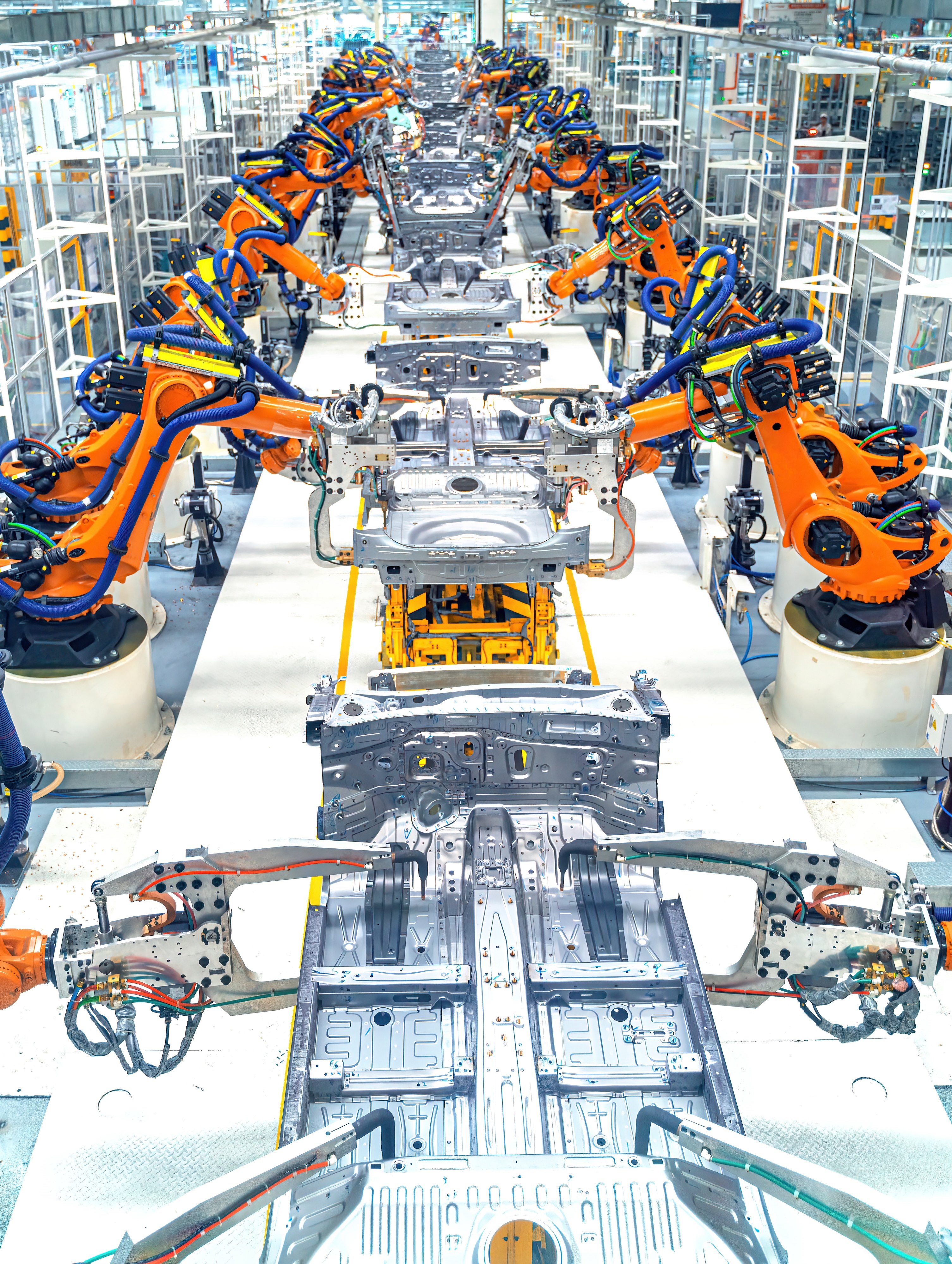 △ 現(xiàn)代化的汽車制造廠焊接裝配線。(圖/視覺中國)