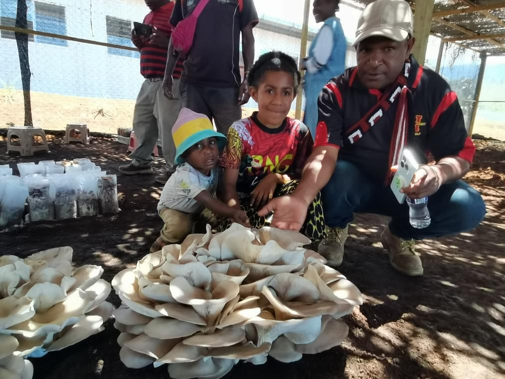 △2025年9月29日,在巴布亞新幾內(nèi)亞東高地省首府戈羅卡市,當(dāng)?shù)孛癖妳⒂^中國援巴布亞新幾內(nèi)亞菌草旱稻項(xiàng)目永久性示范基地。