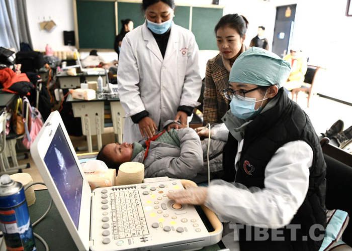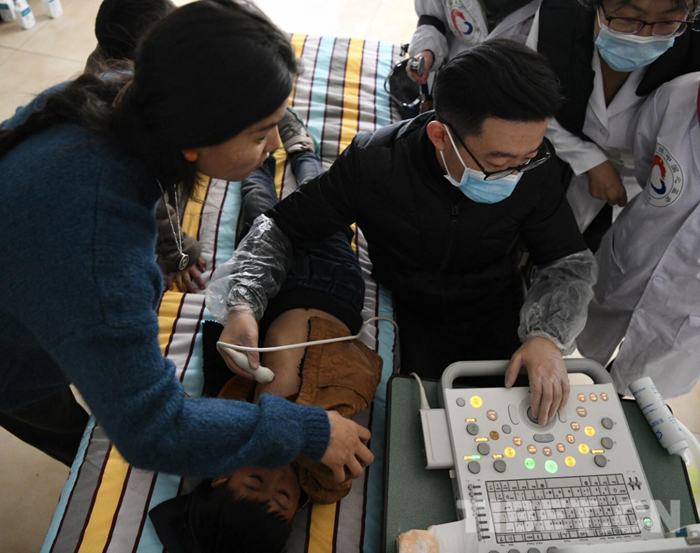醫(yī)療隊和志愿者們不顧舟車勞頓和高原反應的不適,認真地對每一位前來篩查的小朋友進行詳細的詢問和認真的檢查。對于有疑似癥狀的患者則現場利用從北京帶來的先進設備進行彩超診斷,并耐心和每一位患者家屬進行交流和講解,在每個工作細節(jié)上精益求精。