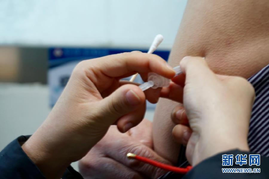 2021年1月5日,在青海省西寧市第一人民醫(yī)院,醫(yī)護(hù)人員在為相關(guān)人員接種新冠疫苗。新華社記者 央秀達(dá)珍 攝