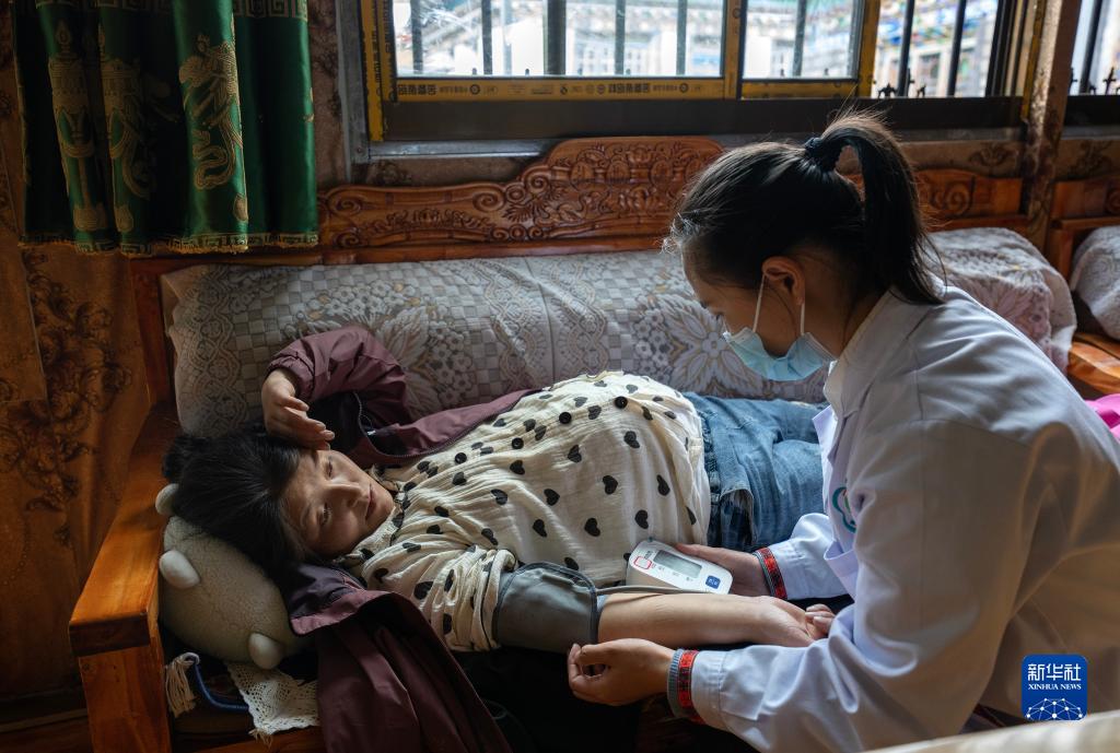 6月12日,王彤旭在吞不絨村為珠杰診治。新華社記者 費茂華 攝