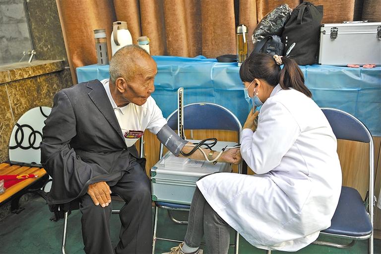圖為醫(yī)護(hù)人員在為退休干部測(cè)量血壓。記者 旦增蘭澤 王敏 攝
