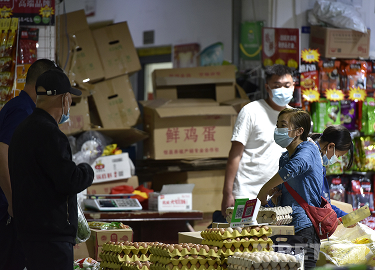 圖為8月9日,市民在拉薩柳梧農(nóng)貿(mào)市場(chǎng)購(gòu)買(mǎi)雞蛋 攝影:王媛媛