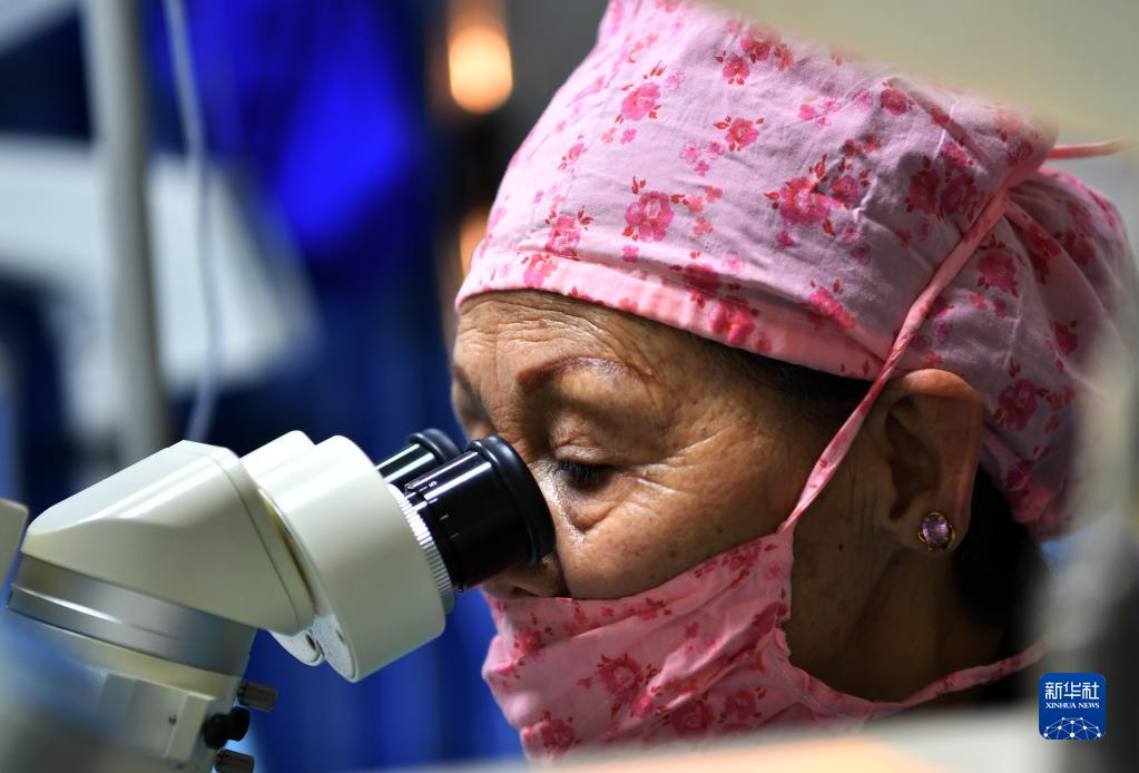 藏族眼科專家卓嘎給患者實(shí)施復(fù)明手術(shù)(3月24日攝)。新華社記者覺(jué)果 攝