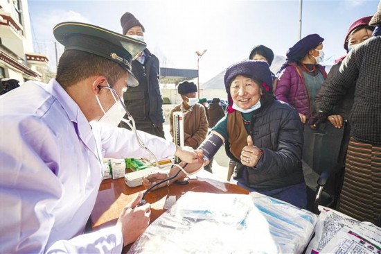 武警西藏總隊拉薩支隊深入拉薩市墨竹工卡縣巴洛村開展惠民問診活動。記者 格桑倫珠 唐斌 攝