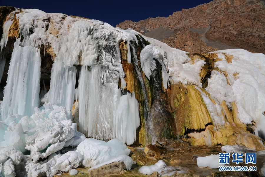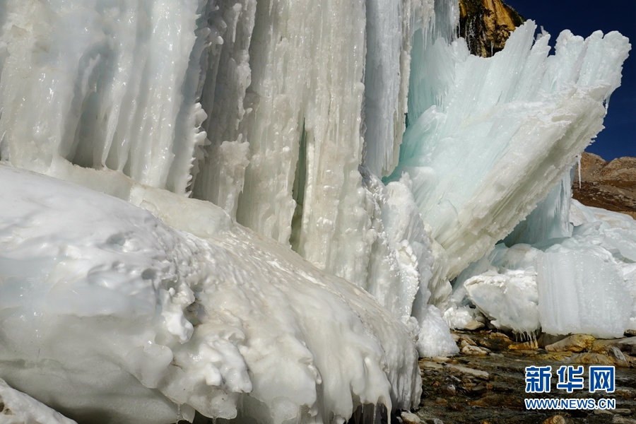 圖為崗什卡雪峰腳下的冰瀑。新華網(wǎng)發(fā)(成林 攝)